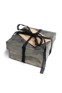 革・木・骨・貝殻などのオーガニック素材を用いて、 洗い、シワ、プレス、ボイルなど多様な加工を重ねることで、伝統的な手仕事の中に独自の質感と意匠が宿る唯一無二の表現を生み出している。