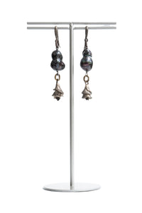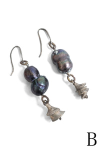 • 人工核を持たずに天然の中で生まれた希少なケシパールとバラのモチーフを組み合わせたピアスです。