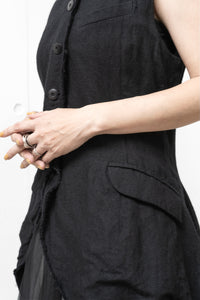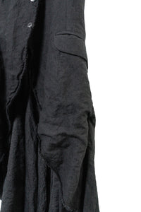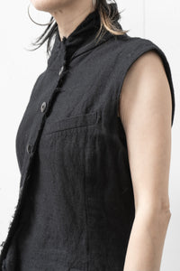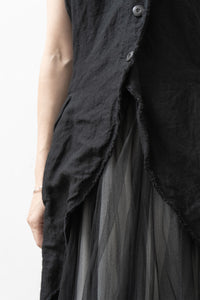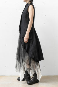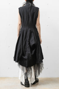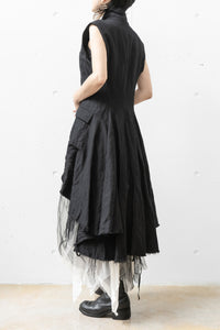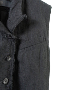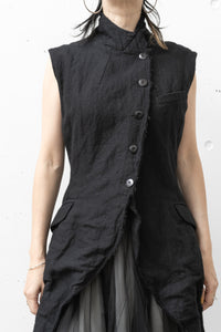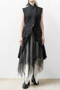 这款无袖夹克的设计就像尾部的大衣。采用羊毛面料,富有表现力。此外,下摆的镂空设计和后身腰部的收窄设计具有体积感,令人印象深刻,具有存在感,成为具有古典气息的单品。