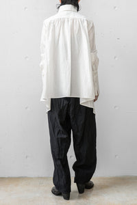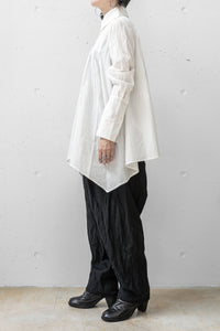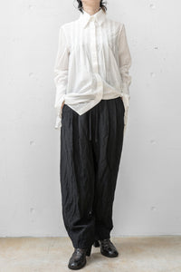除了纽扣门襟设计外,还可以通过拉绳调节腰围尺寸,适合休闲造型。