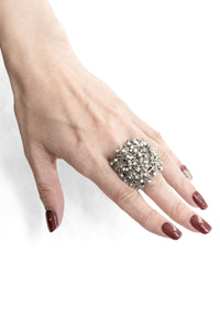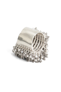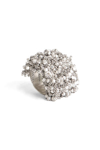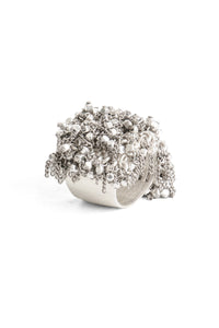 戒指由 Jean francois Mimilla 设计。这款戒指采用立方体钢珠和钢链设计。设计深邃优雅。这款戒指适合日常佩戴。