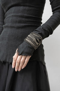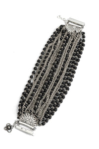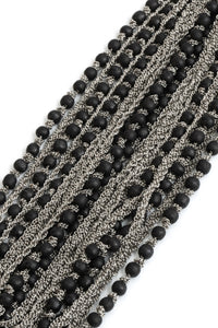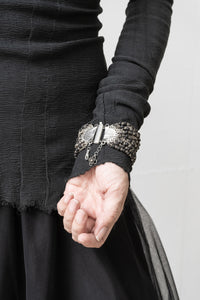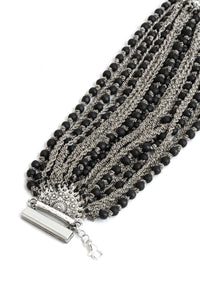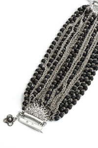 Jean francois Mimilla 手链。这款 22 链手链由哑光玻璃珠和编织钢链组合而成。手链给人以丰满华丽的感觉,但哑光玻璃珠通过降低光泽度而赋予其时尚气息,使其也可用于日常佩戴。