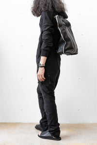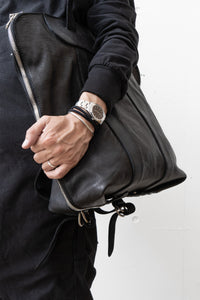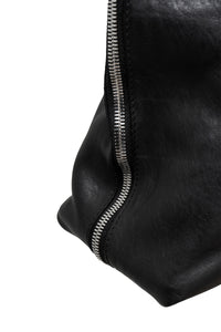 侧面的拉链采用 180° 开合规格,便于操作,底部用按扣扣紧,营造出连贯的轮廓。